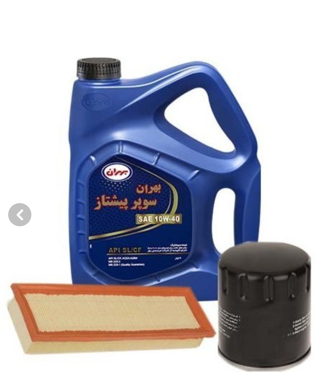 پک روغن موتور بهران سوپر پیشتاز 10W40 SL چهار لیتری همراه با فیلترروغن وهوا ۲۰۶و۲۰۷