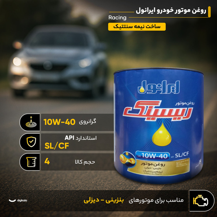 روغن موتور خودرو ایرانول مدل Racing 10W-40 حجم 4 لیتر
